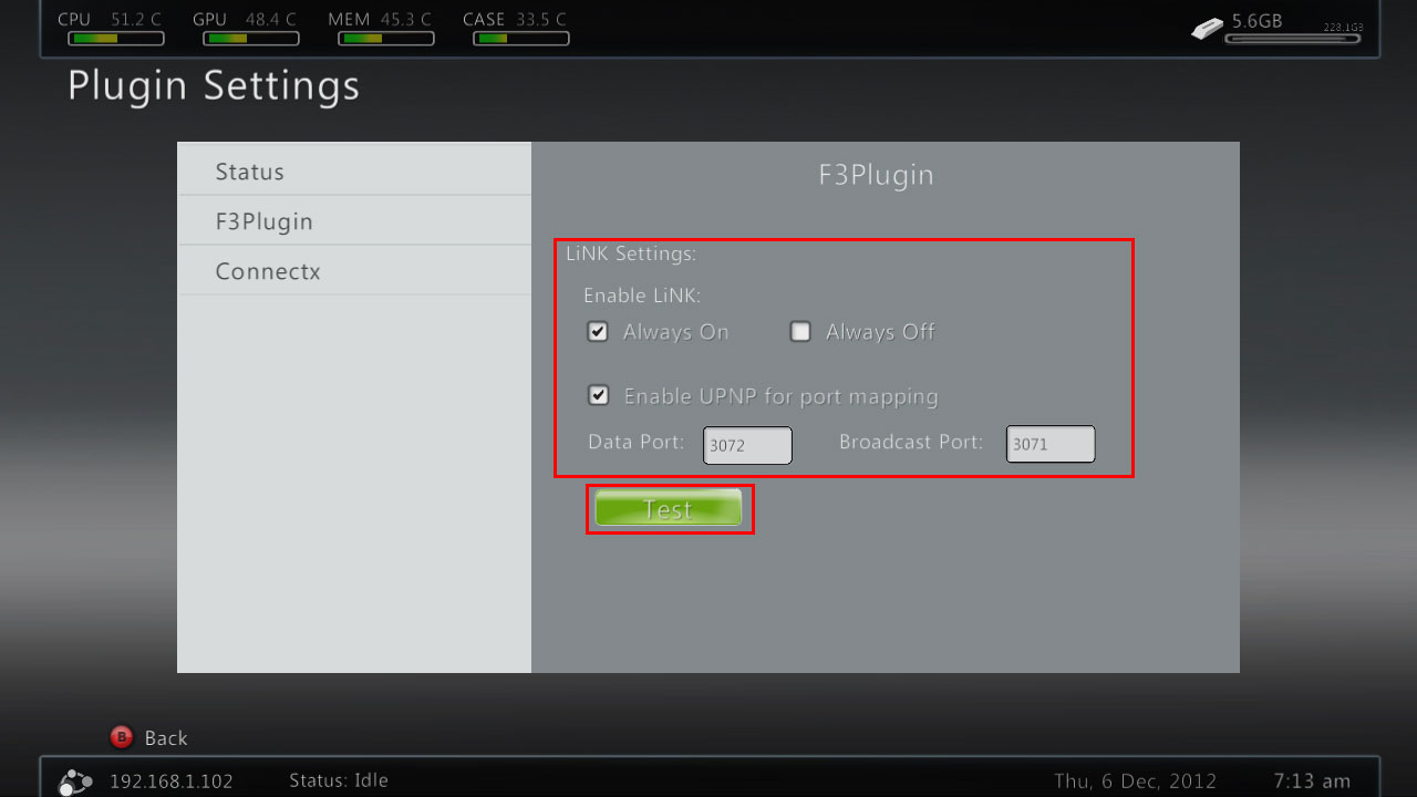 5. Masuk ke bagian Plugin Setting pada F3 dan samakan settingnya dengan gambar di bawah ini, lalu tekan Test